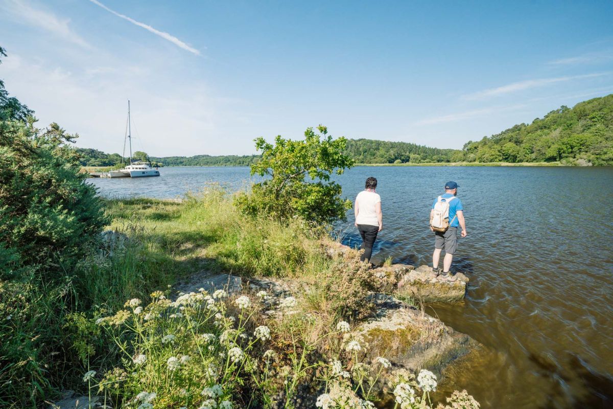 Le petit plus : le sentier de randonnée vous fait passer derrière le parc animalier et botanique de Branféré. L’occasion d’apercevoir quelques girafes se promener et d’entendre le cri des singes résonner depuis les arbres. Une belle addition à votre balade en Bretagne Sud !