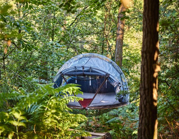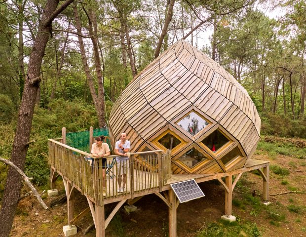 L’Astrolabe, un géopode transparent ouvert sur la nature, en toute intimité pour découvrir nos belles nuits étoilées et plonger plus près des étoiles avec une lunette astronomique.