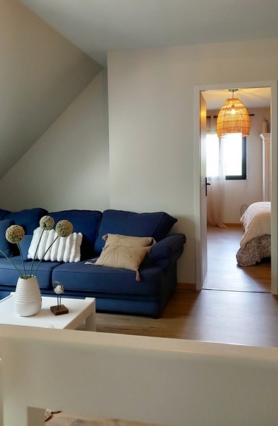 Un espace en commun à l'étage pour les trois chambres, une mezzanine de 40 m² bien aménagée avec TV.