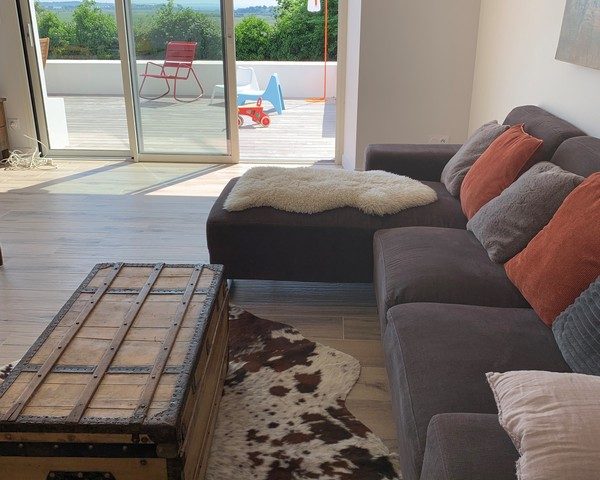 Des vacances au calme, terrasse avec petite vue mer et dégagée sur les anciens marais salants.