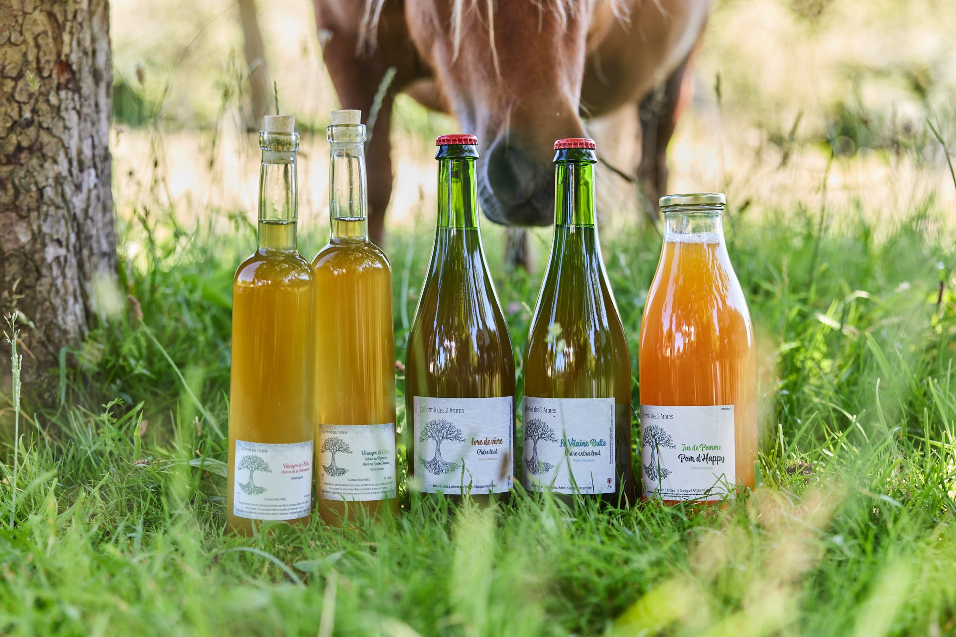 Trois cultures : arboriculture (cidre, jus et vinaigre) - viticulture et légumes de plein champs (AB).