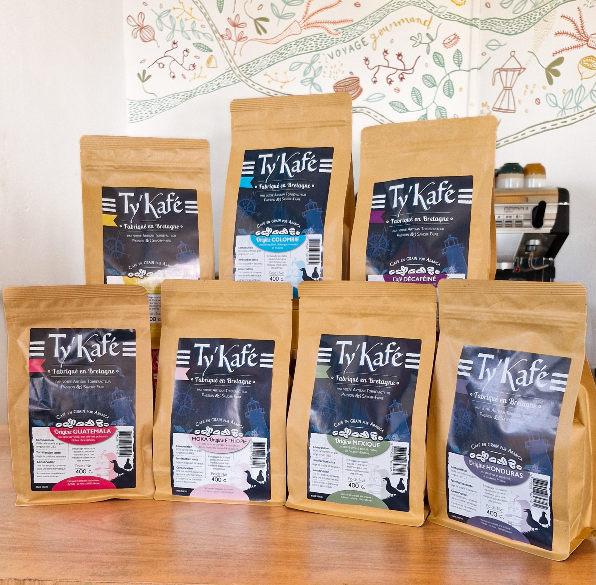 Ty Kafé est une torréfaction artisanale de café installée en Bretagne, à la frontière entre le Morbihan et la Loire-Atlantique.